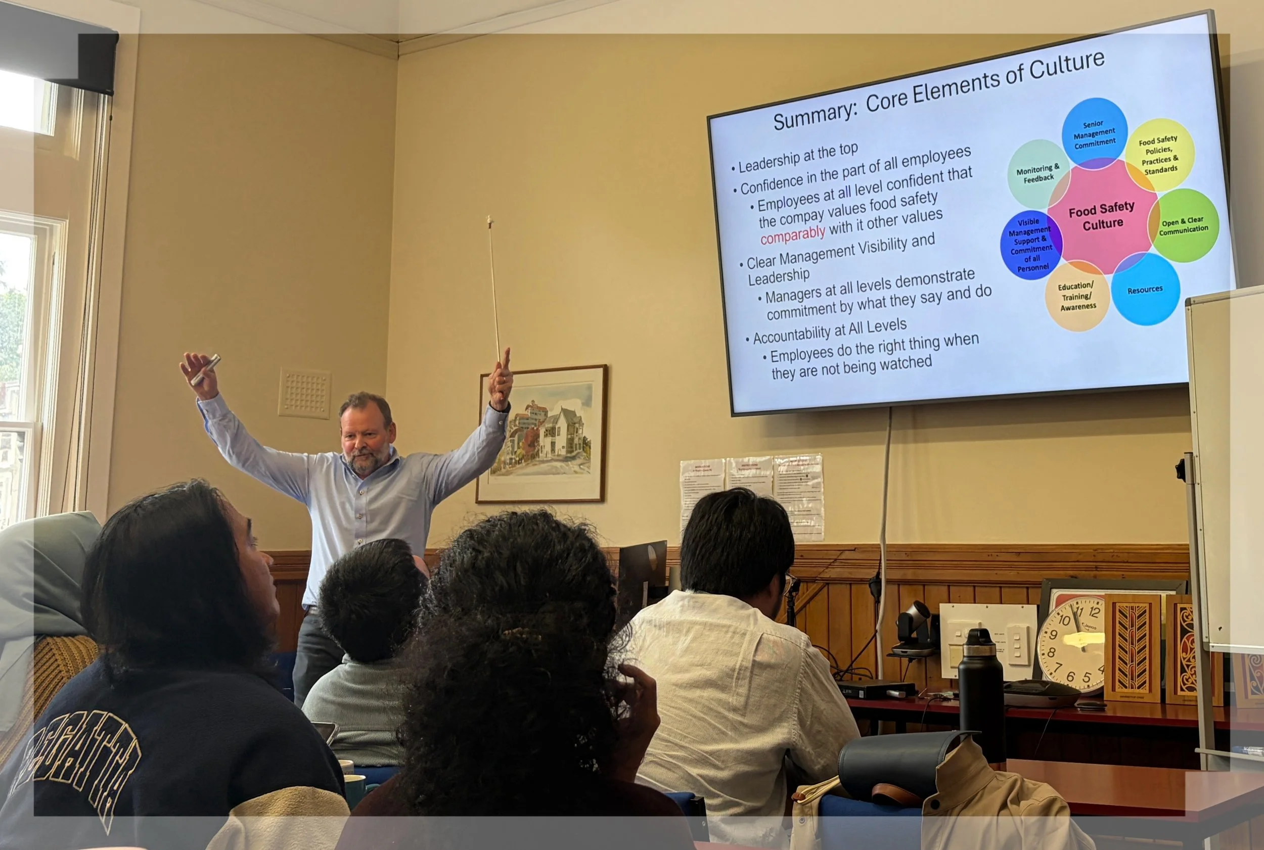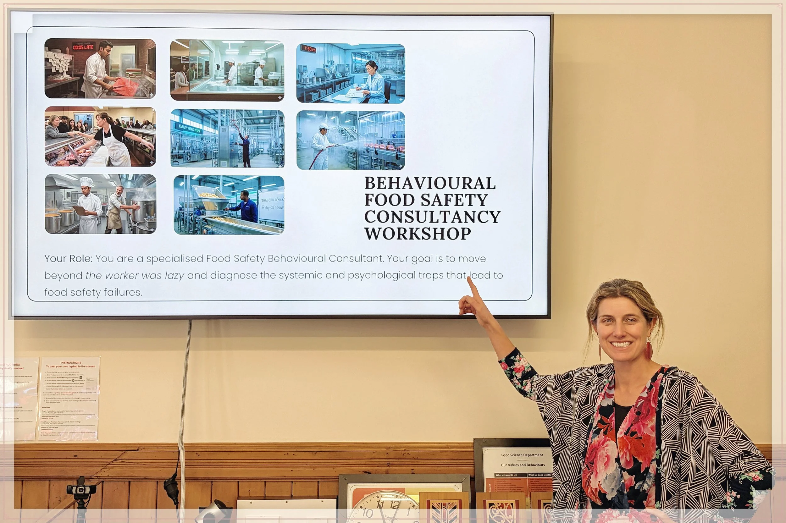 It was an intensive day for our class of 17 students as they bridged the gap between historical foundations and modern behavioural science. Prof Phil Bremer reviewed the history of food safety before introducing the pivotal concept of Food Safety Culture, followed by Prof Miranda Mirosa, who explored the psychology of culture, applying multiple lenses to diagnose why trained staff make unsafe choices and how to build systems that make safety the intuitive choice.
